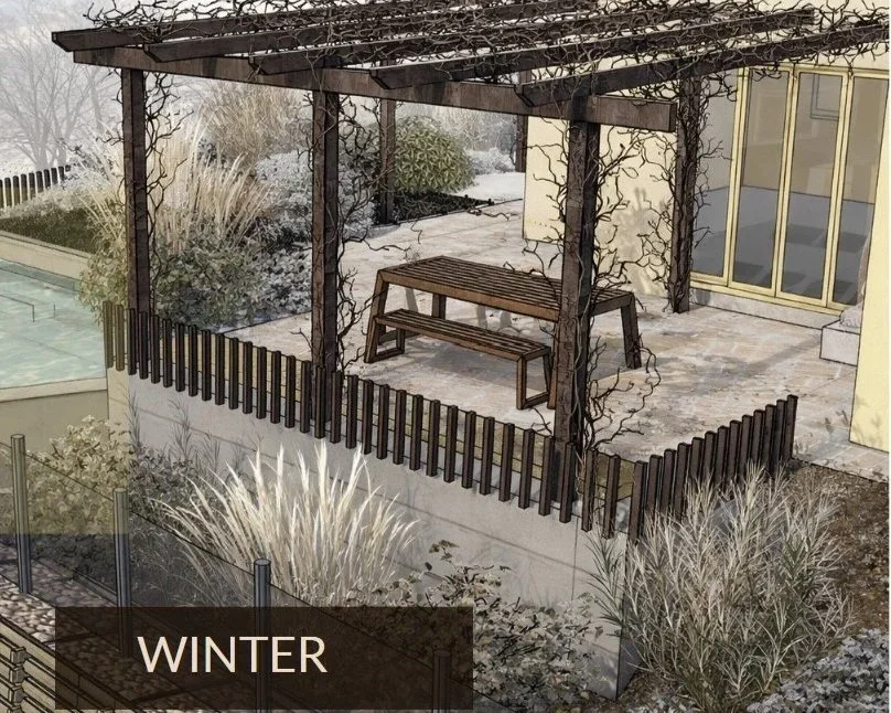 In areas closest to the drop, I introduced a low internal wooden fence — a discreet feature that increases the sense of security while remaining visually unobtrusive.