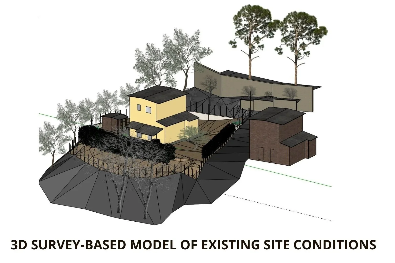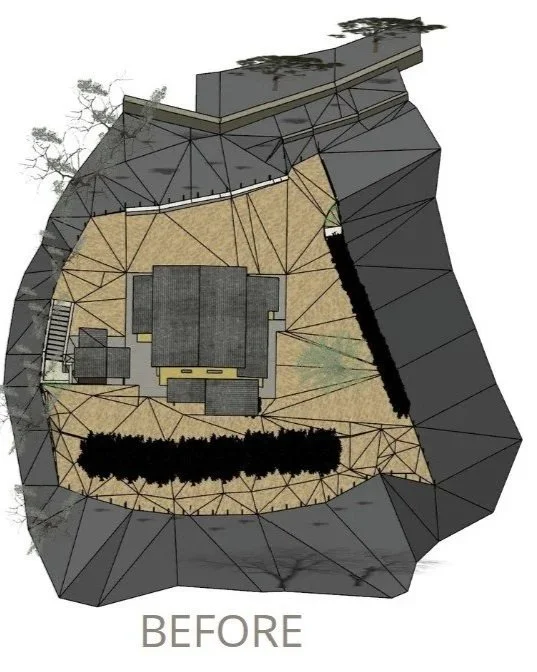This emotional layer of the project is supported by careful technical work. During the second site visit, I carried out a survey using Moasure to record distances and elevation changes, and reconstructed the existing conditions in a 3D model. This made communication clearer and allowed us to make informed decisions, particularly regarding the slope.