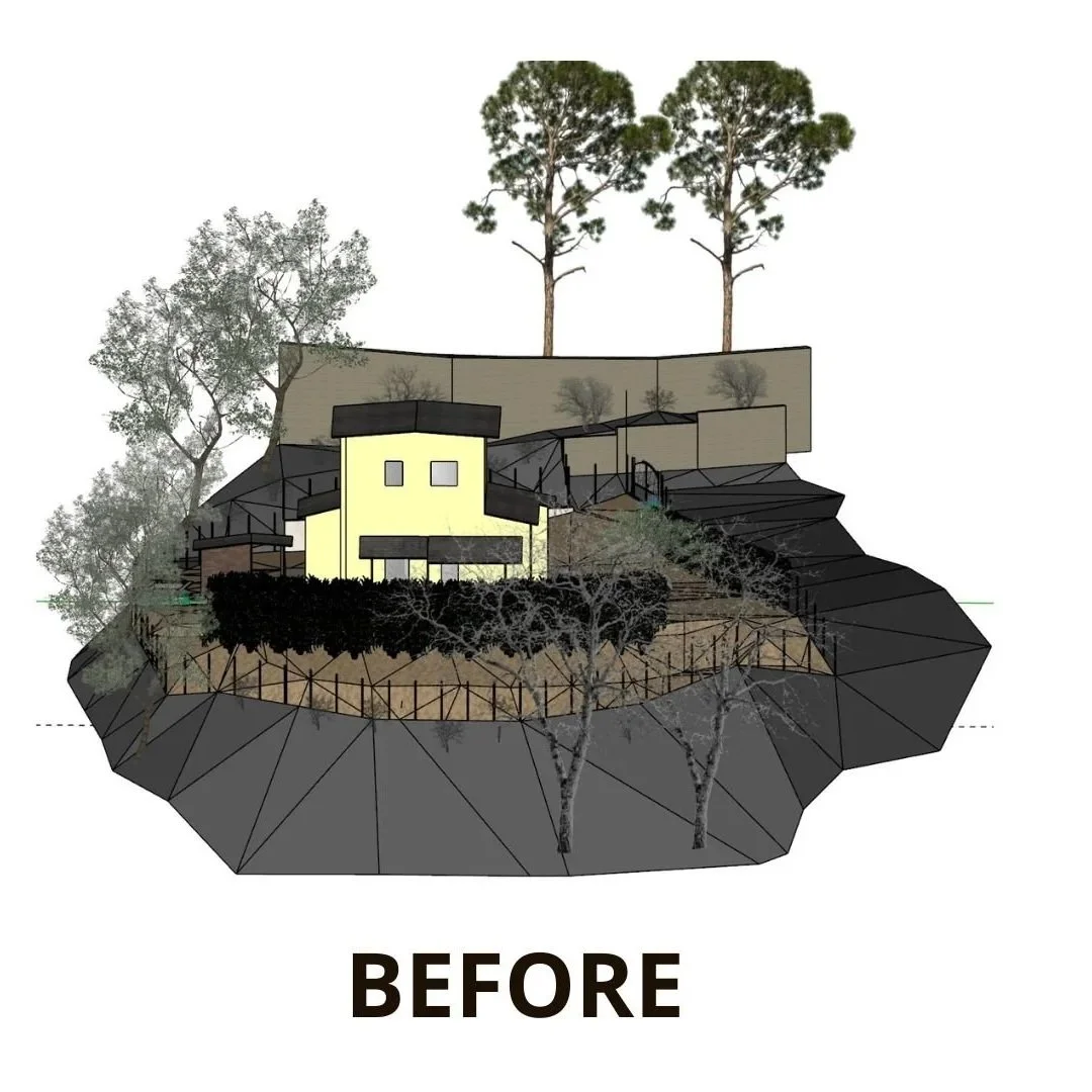 This project reaffirmed the importance of trusting the sensations that arise from the meeting of place and person. At an early stage, I suggested using only part of the slope rather than creating extensive terraced areas that would be difficult to inhabit. Amy’s response was simple and moving:
